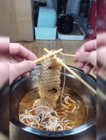 Mới đây, MXH xuất hiện đoạn clip ghi lại cảnh một cô nàng đang miệt mài 'đan khăn' từ những sợi mì ngay trong bát mì đang ăn dở. Sự khéo léo, kiễn nhẫn của cô nàng khiến một bộ phân cư dân mạng thích thú, bày tỏ sự ngưỡng mộ.