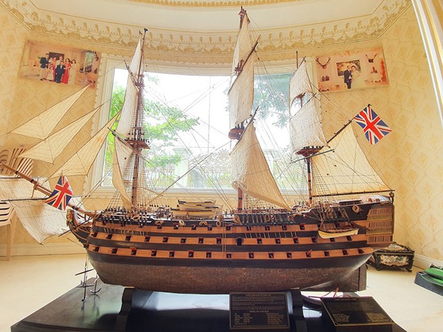 Ấn tượng hơn cả là mô hình chiến hạm của quân đội Hoàng gia Anh giá 250 triệu đồng, được đặt ở vị trí đẹp nhất trong căn biệt thự.