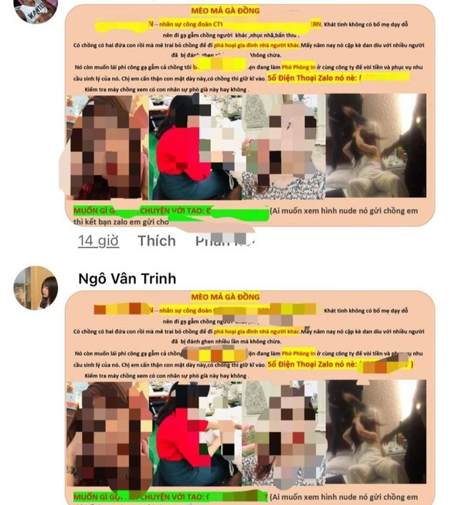 Chưa dừng lại, khi chị T. không bắt máy thì các đối tượng gán ghép hình ảnh và thông tin mang tính dựng chuyện để làm nhục chị này. Cụ thể, các đối tượng ghép hình chị T. với nam công nhân đã vay "tín dụng đen" và dựng chuyện chị T. "gạ gẫm cướp chồng" người khác.