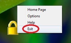 + Khi chương trình đang hoạt động thì sẽ xuất hiện một chiếc ổ khá màu vàng ở góc dưới, bên phải màn hình. Để thoát Ultrasurf, nhấn chuột phải vào ổ khóa chọn Exit.