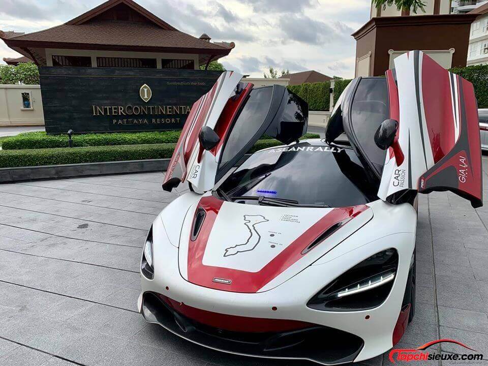 Tiếp đến là McLaren 720S nguyên bản màu đỏ Memphis. Siêu xe này vừa thực hiện hành trình dài 4.000 km xuyên qua 3 nước Đông Dương. Sau khi kết thúc hành trình tiền trạm trên, McLaren 720S được chủ nhân sang nhượng lại cho một người chơi xe khác cũng là thành viên của Car Passion.