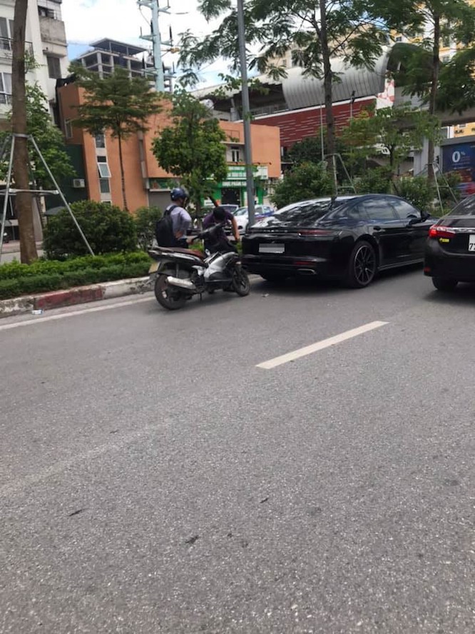 Tại thời điểm đó, chiếc Porsche Panamera đang dừng chờ đèn đỏ thì bị Honda Air Blade tông trúng từ phía sau. Theo một số nguồn tin cho biết, số tiền tài xế Honda Air Balde phải đền bù cho chủ Porsche Panamera lên tới 50 triệu đồng.