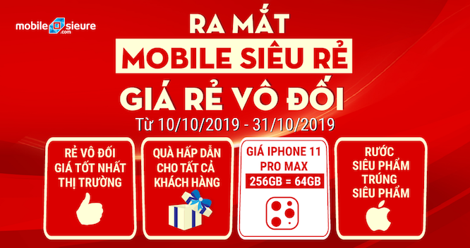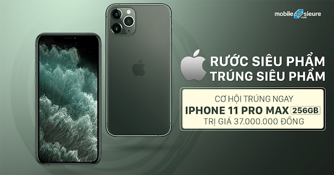 Áp dụng cho những quý khách mua iPhone 11 | Pro | Pro Max từ nay đến hết 23/10/2019 tại Mobile Siêu Rẻ. Quý khách có cơ hội trúng ngay chiếc iPhone 11 Pro Max 256GB trị giá 37.000.000đ. Chi tiết xem tại đây.