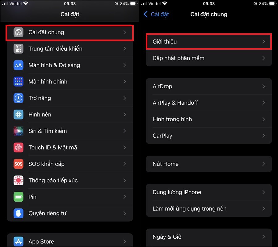 Bước 1: Đầu tiên bạn vào phần Cài đặt -> Cài đặt chung -> Giới thiệu.