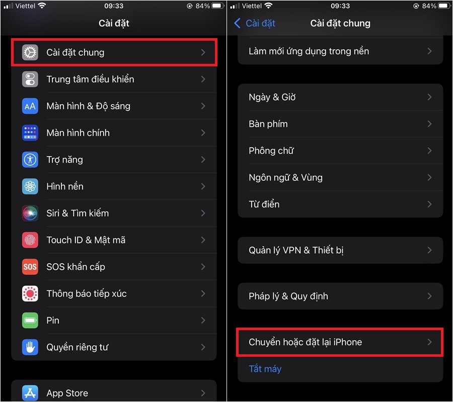 Bước 1: Bạn vào phần Cài đặt -> Cài đặt chung -> Chuyển hoặc đặt lại iPhone.