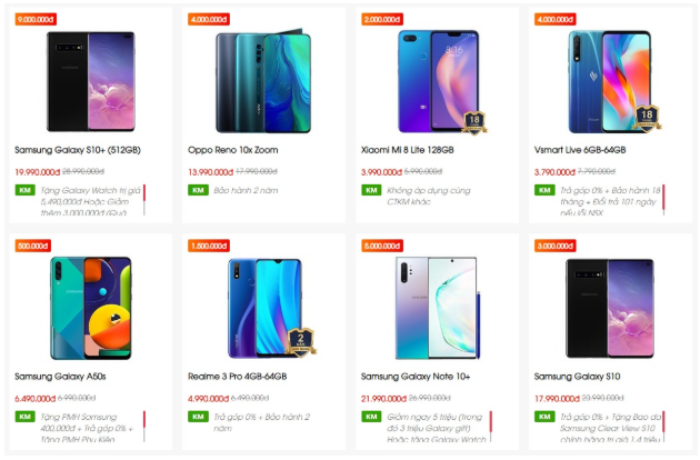 Rất nhiều sản phẩm điện thoại giảm giá mạnh, Samsung Galaxy S10+ giảm hẳn 9 triệu đồng.