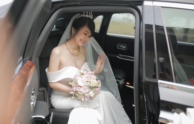 Cô dâu ngồi bên trong xe Rolls-Royce Ghost.