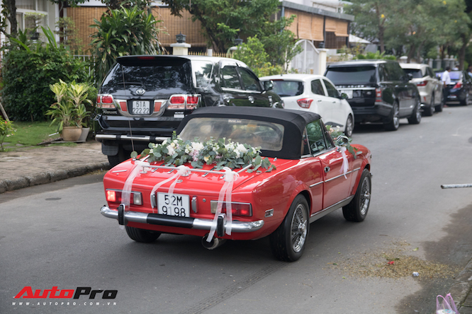 Chiếc xe cổ Fiat 124 Sport Spider và dàn xe sang trên sẽ tiến về phía nhà cô dâu Đông Nhi ở khu dân cư Him Lam, Bình Chánh, TP HCM. Một số nguồn tin cho biết cặp đôi này sẽ đi Phú Quốc vào chiều nay để đãi tiệc.