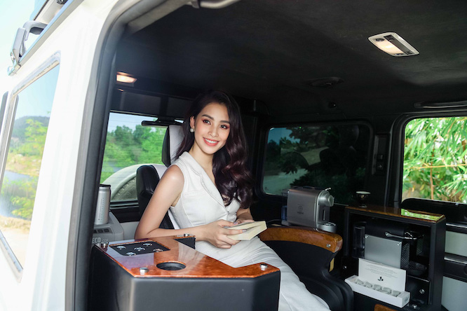 Do loại bỏ hàng ghế thứ hai nên bên trong nội thất của xe trông rộng rãi hơn. Đặc biệt, bên trong xe còn được thiết kế một máy pha cà phê rất tiện lợi. Đây cũng là một chi tiết mà đại gia Trung Nguyên muốn PR cho thương hiệu mình đang phát triển.