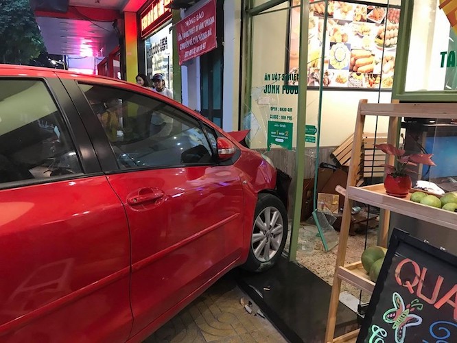 Vụ tai nạn xảy ra tại phố Hàng Hài vào chiều hôm qua (ngày 25/11) khiến một nam thanh niên bị xây xước nhẹ. Cửa kính quán trà chanh bên đường bị tông vỡ nát. Phần đầu xe Toyota Yaris hư hỏng nặng. May mắn vụ tai nạn trên không bị thiệt hại nặng về người.