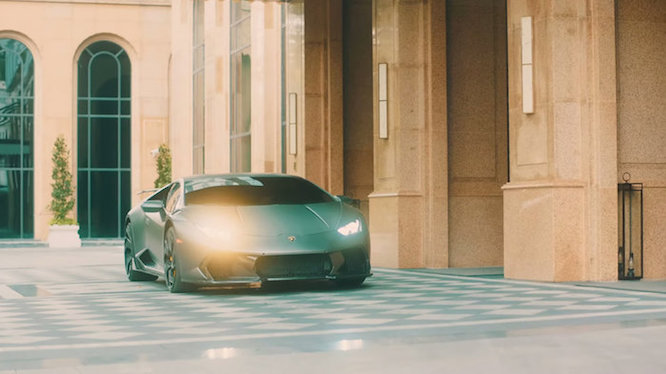 Lamborghini Huracan LP610-4 độ Novara Edizione xuất hiện ở ngay đầu MV nên lại càng được chú ý. Siêu xe sở hữu ngoại hình ấn tượng với bản độ body kit Novara Edizione được làm từ sợi carbon sáng bóng của hãng Vorsteiner.