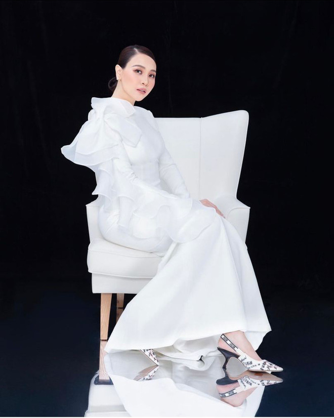 Bức hình Đàm Thu Trang mặc váy trắng dài ôm sát cơ thể làm tôn lên đường cong nuột nà. Nếu nhắc đến những mỹ nhân Vbiz lấy lại vóc dáng nhanh chóng sau sinh nhất định không thể không nhắc đến Đàm Thu Trang. Cô còn thể hiện góc nghiêng thần thánh với vẻ mặt sang trọng, mặn mà không kém phần quyến rũ. Thậm chí một số người còn nhận xét trông Đàm Thu Trang còn xinh đẹp hơn cả thời con gái.