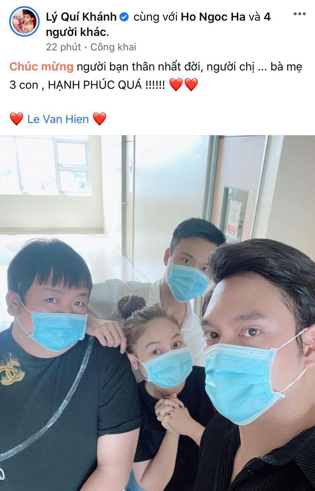 Ngoài Mẹ ruột Hồ Ngọc Hà và Kim Lý còn có hội bạn thân của cô là Lý Quý Khánh vào viện chúc mừng gia đình cô. BTV Ngọc Trinh – bạn thân của cặp đôi Hà Hồ - Kim Lý cũng gửi lời chúc mừng với lời nhắn: “She is a super woman” (Tạm dịch: Cô ấy là người phụ nữ siêu phàm).