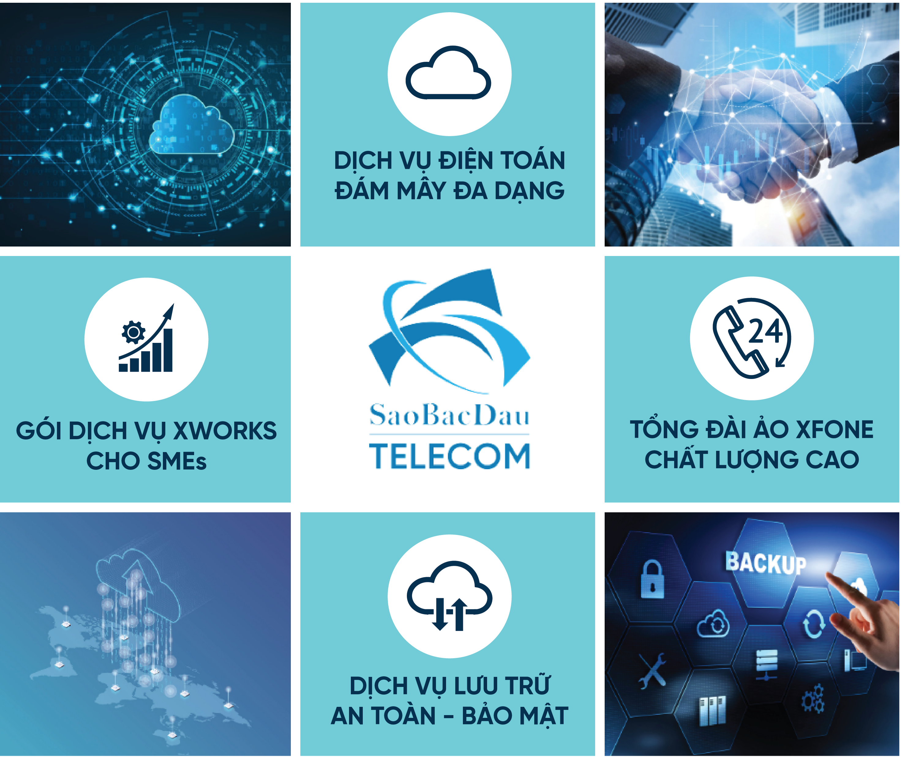 Dịch vụ máy chủ ảo và trung tâm dữ liệu ảo trên nền điện toán đám mây: giúp doanh nghiệp chuyển đổi hạ tầng lên cloud an toàn và bảo mật, linh hoạt tùy biến mô hình sử dụng và dễ dàng quản trị, giám sát. Dịch vụ sao lưu và phục hồi dữ liệu trực tuyến Easy Backup: dữ liệu doanh nghiệp được mã hóa 100% khi đưa lên hệ thống, Easy Backup có thể tạo ra ngẫu nhiên 256-bit full length AES encryption key để mã hóa các dữ liệu backup mặc định, phân quyền quản lý bảo mật tối đa, giúp doanh nghiệp an tâm trước bất kỳ sự cố ngoài ý muốn. Bên ngoài các đối tượng Backup cơ bản, EasyBackup còn cung cấp giải pháp Backup cho các thành phần Vmware/HyperV/Office365/Ms Exchange… Tổng đài VoIP xFone: giải pháp thay thế hoàn hảo cho tổng đài điện thoại bàn (analog) thông thường, linh hoạt sử dụng bất kỳ đâu với ứng dụng di động, dễ dàng giám sát với chức năng ghi âm, tăng hiệu quả chăm sóc khách hàng. CDN – Dịch vụ tăng tốc website cho doanh nghiệp, tối ưu trải nghiệm người dùng: giải pháp phân phối nội dung giúp tăng tối đa tốc độ tải trang và phòng chống tấn công mạng cho doanh nghiệp, giúp người dùng truy cập nhanh, không bị nghẽn mạng và tăng sự hài lòng khi trải nghiệm. Chấm công nhận diện khuôn mặt xFace: giải pháp ứng dụng AI Camera giúp quản lý nhân sự hiệu quả, đơn giản hóa quản lý chấm công và quản lý vào ra, đặc biệt an toàn với tính năng không cần chạm và độ chính xác cao. Lưu trữ dữ liệu camera giám sát xCloudCam: nền tảng hỗ trợ tích hợp nhiều dòng camera trên thị trường và có thể quản lý số lượng lớn hàng trăm ngàn camera, có thể phân quyền quản trị, giúp doanh nghiệp quản trị tối ưu và tiện lợi khi sử dụng. Gói dịch vụ hoàn chỉnh cho SMB – xWorks: được thiết kế dành riêng cho các doanh nghiệp vừa và nhỏ với những giải pháp cơ bản nhất gồm lưu trữ dữ liệu, tổng đài VoIP xFone, xFace, xCloudCam, phần mềm kế toán và xuất hóa đơn điện tử… giúp doanh nghiệp tập trung vào phát triển kinh doanh và chăm sóc khách hàng, tiết kiệm thời gian và nguồn lực.
