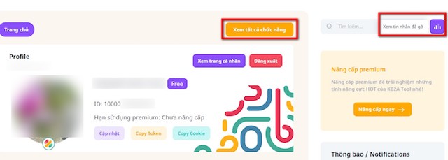 Bước 5: Để xem lại các tin nhắn đã xoá hoặc gỡ, bạn bấm nút KB2A Tool trên thanh công cụ ở góc trên cùng bên phải. Nếu không thấy nút này, bạn bấm chọn Tiện ích (cạnh biểu tượng tài khoản), trong menu xổ xuống chọn KB2A Tool.