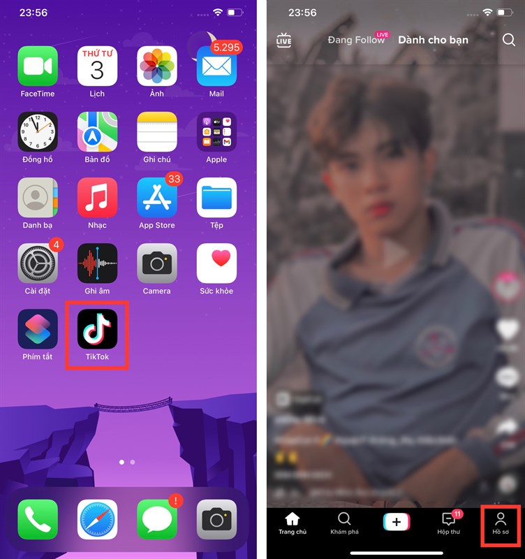 Bước 1: Đầu tiên bạn truy cập vào ứng dụng TikTok, sau đó tìm chọn mục Hồ sơ.