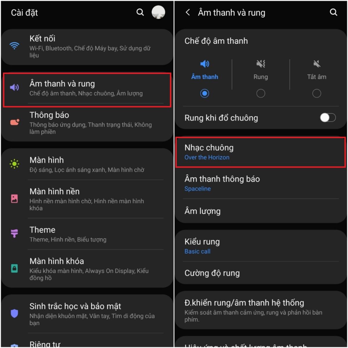 Bước 3: Bước tiếp theo bạn vào mục Nhạc chuông -> Chọn nhạc chuông mà mình thích.
