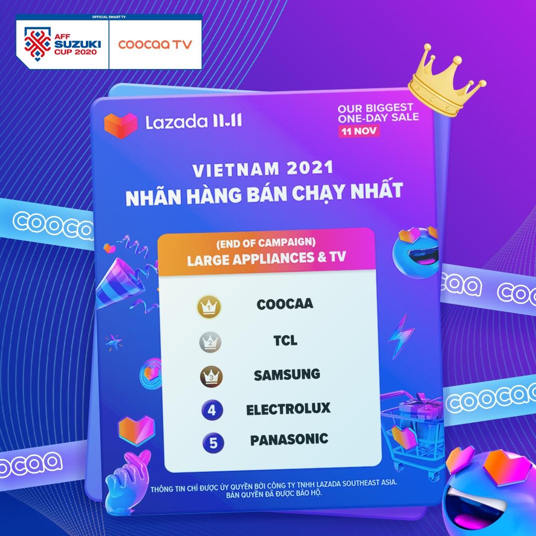 Thông qua các hoạt động trực tuyến, coocaa đã góp phần đưa bộ môn thể thao vua lan tỏa đến với người hâm mộ khắp thế giới và mang đến nhiều trải nghiệm hơn cho khách hàng. Trong chiến dịch chiến dịch 11.11 vừa qua, coocaa TV tiếp tục giữ vững vị trí số 1 tại danh mục thiết bị gia dụng tại Lazada và mang về doanh thu cuối năm vượt ngoài sự mong đợi. Doanh số bán hàng của hãng tăng 179% so với cùng kỳ năm ngoái tại Việt Nam, gây ấn tượng với nhiều người tiêu dùng Việt Nam.