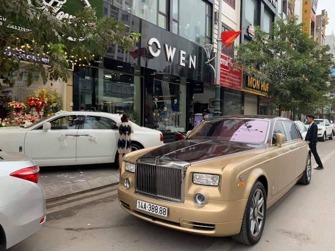 Góp mặt trong đám cưới trên còn có Rolls-Royce Phantom biển tứ quý 8. Chiếc xe có ngoại thất màu vàng đồng. Ngoài bộ ba Maybach và Rolls-Royce còn có sự xuất hiện của Chevrolet Camaro RS Cabriolet 2019 độc nhất Việt Nam, Lexus LX 570 Super Sport cùng hàng loạt mẫu xe sang khác.