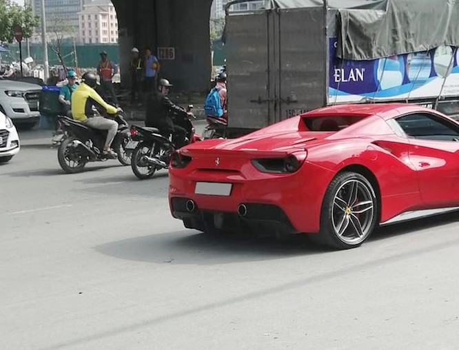 Hình ảnh Ferrari 488 Spider dừng xe ngay giữa đường Đình Thôn, Hà Nội đã thu hút sự quan tâm của nhiều người. Sau khi chia sẻ trên mạng xã hội, bức ảnh này nhận được nhiều bình luận hài hước. Được biết siêu xe này từng thuộc quyền sở hữu của Cường Đô la và được đưa ra Hà Nội khoảng 2 tuần nay.