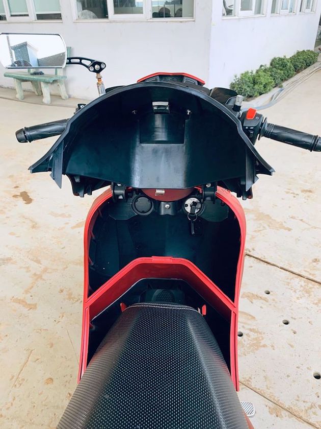 Bình xăng giả này thực tế là thùng chứa đồ. Kiểu thiết kế này cũng từng xuất hiện trên một số bản độ hay trên các mẫu xe PKL. Chẳng hạn như dòng xe Honda NC750.