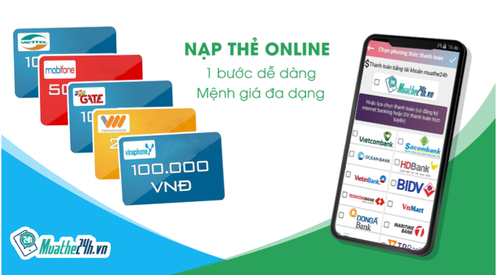 Sau khi đã chọn được đủ số lượng thẻ cào phù hợp với mong muốn của mình, để thực hiện các giao dịch mua bán trên muathe24h.vn, khách hàng có thể lựa chọn 1 trong hai hình thức thanh toán là thông qua tài khoản thành viên hoặc thông qua tài khoản ngân hàng thông thường một cách vô cùng tiện lợi và nhanh chóng nhất.