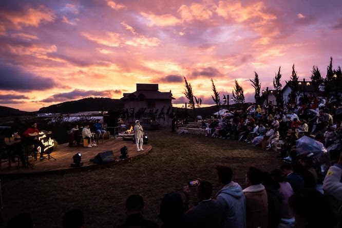 Sân khấu của Mây đúng như câu hát trong một bài hát của Trịnh Công Sơn: “mây treo trên đầu và nắng trên cao”, với background là núi đồi, với ánh sáng của nắng vàng và của mây hồng …Sân khấu mộc nhưng có gout (như nhận xét của rất nhiều bạn nhạc của Mây) đã là nơi diễn ra gần 100 chiều nhạc với hơn 50 ca sĩ đang được yêu thích. Có thể nói trong 1 năm vô cùng khốn khó như năm 2020, Mây Lang Thang là sân khấu ca nhạc diễn ra nhiều show nhất – và đặc biệt, nơi có khán giả “chịu chơi” nhất, khi không những họ tắm mình trong âm nhạc mà còn tắm mình trong những cơn mưa & gió; dù giá lạnh, dù mưa bão cũng không ngăn nổi những tâm hồn yêu nhạc đắm say; không ngăn nổi những giọng ca vàng; những yêu thương của ca sĩ dành cho người và vùng đất này