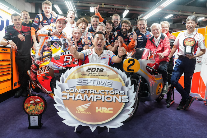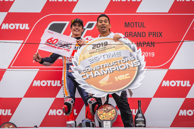 Chặng 16 (diễn ra vào ngày 20/10/2019 tại trường đua Twin Ring Motegi, Nhật Bản) – Đạt danh hiệu Nhà sản xuất vô địch MotoGP 2019: nhà sản xuất Honda tham gia giải đấu MotoGP thông qua đội đua Repsol Honda Team và các đội đua vệ tinh (LCR Honda Idemitsu và LCR Honda Castrol). Với 426 điểm đạt được, nhà sản xuất Honda đã đạt danh hiệu Nhà sản xuất vô địch, theo sau là nhà sản xuất Ducati (318 điểm), nhà sản xuất Yamaha (321 điểm) và nhà sản xuất Suzuki (234 điểm). Hiện nhà sản xuất Honda đang nắm giữ 25 danh hiệu vô địch tại MotoGP.