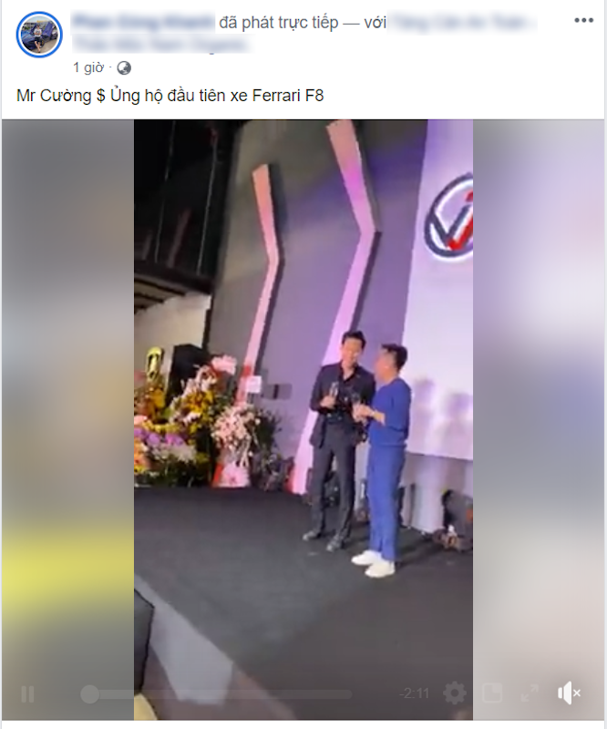 Theo một số tin đồn đoán, nhân dịp showroom này khai trương đại gia Nguyễn Quốc Cường tậu Ferrari F8 Tributo tiền tỷ. Thông tin này được đại gia Bến Tre chia sẻ trong trong livestream phát trực tiếp. Tuy nhiên, đại gia Nguyễn Quốc Cường vẫn chưa lên tiếng xác nhận.