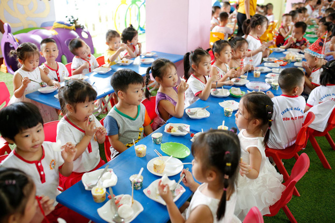 Hình ảnh các bé ăn uống tại trường Vườn Mặt Trời.