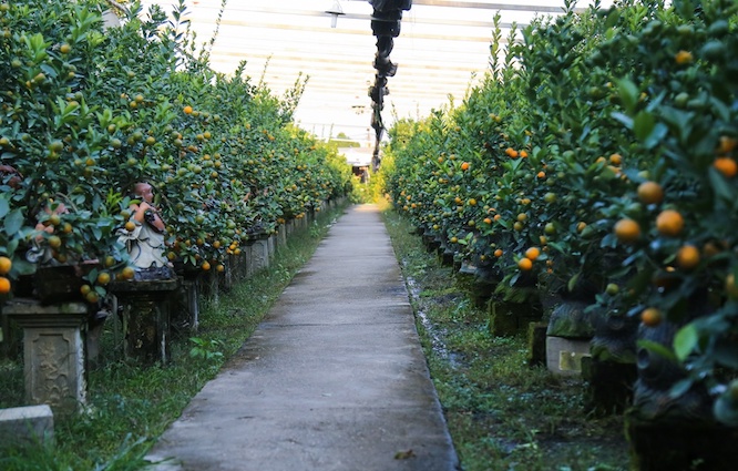 Khi chọn quất chơi Tết, khách hàng thường dựa vào tứ quý: quả vàng, quả xanh, nụ trắng, lá chồi. Vì thế, người dân phải chăm sóc rất tỉ mỉ để hoa, quả, chồi ra đúng dịp.