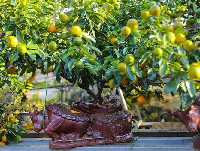 Cây quất bonsai cỡ nhỏ đang là mặt hàng chơi Tết được nhiều người quan tâm. Bởi Tết Nguyên Đán tới đây là Tết Canh Tý, do đó các chậu hình hoặc cây cảnh tạo dáng hình chuột lại càng đắt giá.