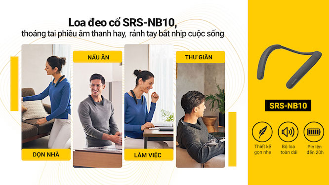 Sở hữu chất lượng âm thanh tuyệt vời với thiết kế nhỏ gọn, thoải mái, SRS-NB10 là người bạn lý tưởng để người dùng vừa tận hưởng những nội dung yêu thích mà vẫn rảnh tay làm được nhiều việc khác cùng lúc. Đặc biệt, trong bối cảnh các nội dung audio ngày càng hấp dẫn, đa dạng và càng có nhiều người nghe, đây là thiết bị không thể thiếu để thưởng thức nội dung này một cách thoải mái trong thời gian dài.