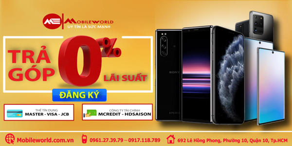 Áp dụng mọi khuyến mãi như mua thông thường. Không cần thế chấp tài sản, chứng minh tài chính hoặc công chứng giấy tờ. Tư vấn mua trả góp nhanh chóng, gọn lẹ, thủ tục đơn giản.Hệ thống bán lẻ Điện thoại di động MobileWorld (mobileworld.com.vn) là, Máy tính bảng, Đồng hồ và các Phụ kiện tại TpHCM Chính hãng, Uy tín, Giá rẻ.