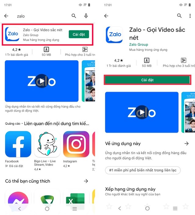 Hãy vào cửa hàng trực tuyến CH Play hoặc App Store -> tìm ứng dụng Zalo và nhấn chọn Cập nhật là xong.