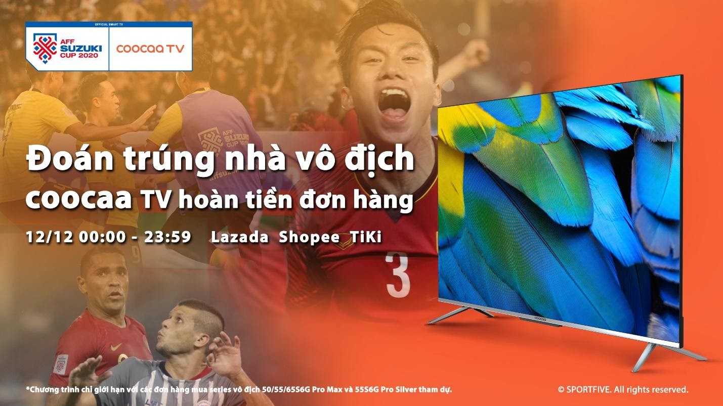 Cùng coocaa TV bùng nổ cơn sốt bóng đá “Đoán trúng nhà vô địch, coocaa TV hoàn tiền đơn hàng”, người tiêu dùng sẽ có cơ hội nhận hoàn tiền đơn hang của mình vào ngày 12/12 và thưởng thức trọn vẹn khoảnh khắc có ‘’1-0-2’’ của giải đấu AFF CUP 2020.