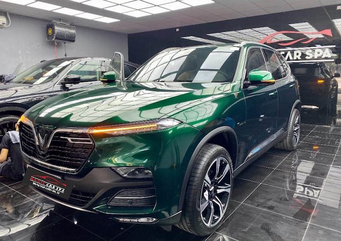 Mới nhìn thoáng qua, nhiều người lầm tưởng đây là màu xanh Ngọc Lục Bảo (Emerald Green), tuy nhiên không phải vậy. Thực chất đây là màu xanh lá “Hunter Green” có sắc tối hơn một chút so với màu Emerald Green. Được biết chiếc VinFast Lux SA2.0 trên được wrap bởi workshop có tên Magic Car Spa ở Hà Nội.