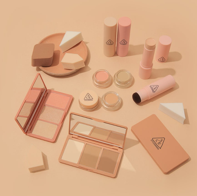 Sau khi lướt đã tìm hiểu sơ qua về bộ sản phẩm của thương hiệu 3CE, cùng nhau lựa chọn ra một số món cơ bản nhất để tiến hành các bước trang điểm cực kì tối giản và nhanh gọn nhé. Đầu tiên không thể thiếu là một thỏi son kem, kem nền, phấn má (mình có thể sử dụng son môi thay phấn má), kem lót, bảng phấn mắt, chì kẻ mày, kẻ mắt và mascara.