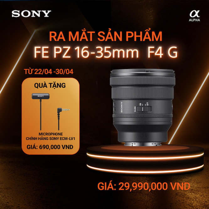 Ống kính FE PZ 16-35mm F4 G sẽ chính thức đến tay người tiêu dùng Việt Nam với giá bán lẻ 29,990,000 đồng. Riêng các khách hàng đặt trước từ 22/04 – 30/04/2022 sẽ được tặng kèm Microphone chính hãng của Sony ECM-LV1 trị giá 690,000 đồng.