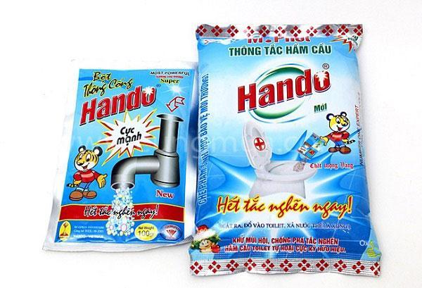 - Đối với bột thông bồn cầu Hando có giá giao động từ 35.000 đến 140.000đ cho 1 gói