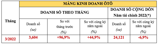 Ở mảng kinh doanh ô tô, Honda Việt Nam tiêu thụ 3604 xe, tăng 96,9% so với tháng trước, tăng 44,9% so với cùng kỳ năm ngoái, cụ thể:
