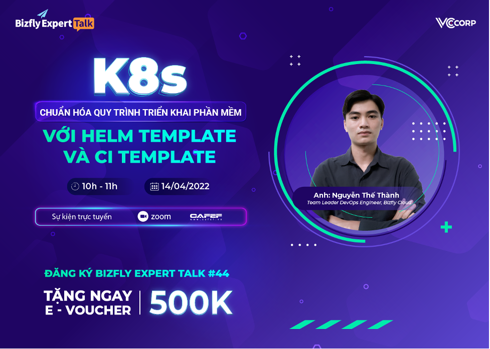 Với mong muốn cùng các developer tối ưu hơn công việc của mình với K8s, tại Bizfly Expert Talk #44 lần này, chúng ta sẽ tiếp tục tìm hiểu chủ đề về “Chuẩn hóa quy trình triển khai phần mềm trên K8s với Helm template và CI template”.