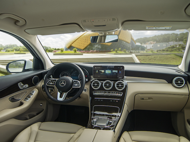 Đây là Mercedes-Benz GLC 200 phiên bản facelift nên đã bị cắt đi một số trang bị như màn hình kỹ thuật số 12.3 inch sau vô lăng, dàn loa vòm Burmester 13 loa 590 W, đèn viền nội thất có 64 màu. Dưới nắp ca-pô của Mercedes-Benz GLC 200 là khối động cơ 4 xy-lanh, dung tích 2.0L. Khối động cơ này sản sinh công suất cực đại 197 mã lực, mô-men xoắn cực đại 320 Nm. Trang bị đi kèm là hộp số tự động 9 cấp.