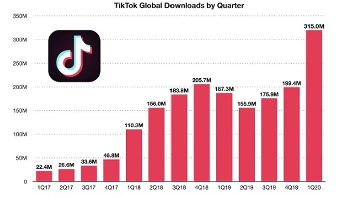Số lượt tải ứng dụng Tiktok tăng trưởng qua các tháng.