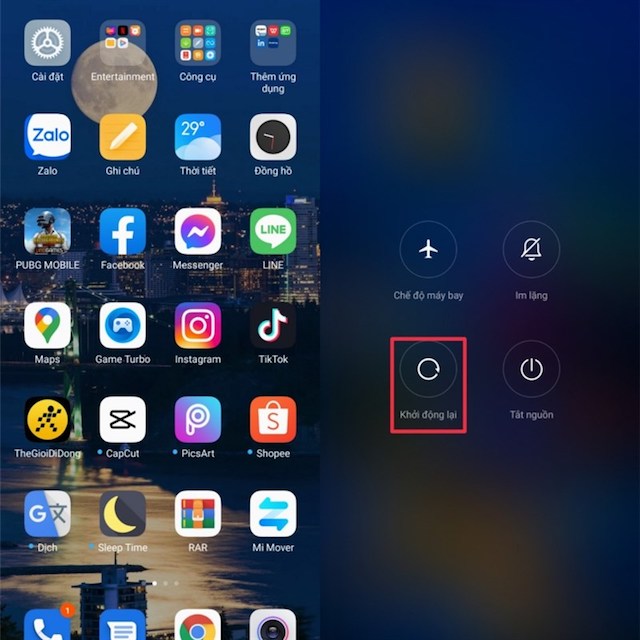 Việc đầu tiên bạn cần làm là khởi động lại điện thoại khi SIM không thực hiện được cuộc gọi. Trên điện thoại Android, bạn chỉ cần nhấn giữ nút nguồn vài giây là có thể tắt được nguồn máy. Hoặc bạn cũng có thể nhấn chọn Khởi động lại cũng được nhé.