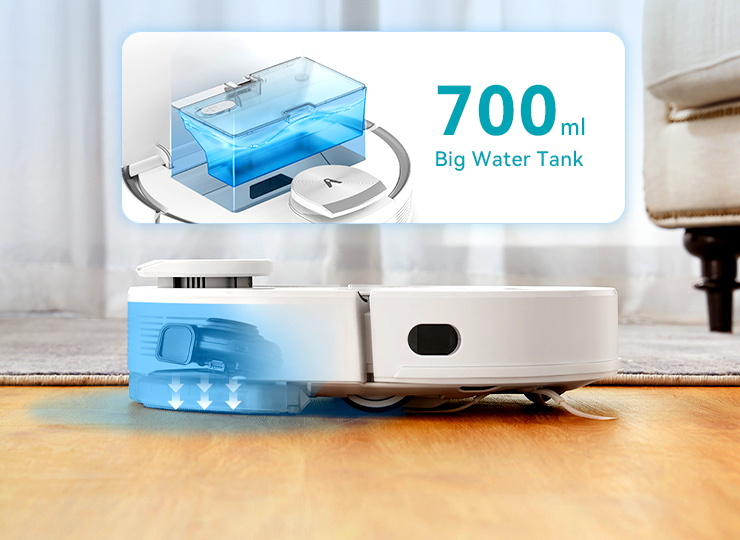 Nhiều tính năng vượt trội khác có ở Viomi V3 MaxSự kết hợp giữa thùng đựng nước và bụi 2 trong 1 của Viomi V3 Max giúp cho việc quét và lau có thể diễn ra một cách đồng thời. Dung tích bình chứa nước là 200ml và của hộp đựng bụi là 400ml. Đồng thời, robot hút bụi lau sàn Viomi V3 Max còn được thiết kế thêm một bình chứa nước siêu lớn 700ml để có thể làm sạch được 3 lần một căn hộ 65m2 chỉ trong một lần vệ sinh duy nhất. Bạn chỉ cần đổ đầy bình nước và thiết lập lịch trình dọn dẹp, việc còn lại là của Viomi V3 Max.