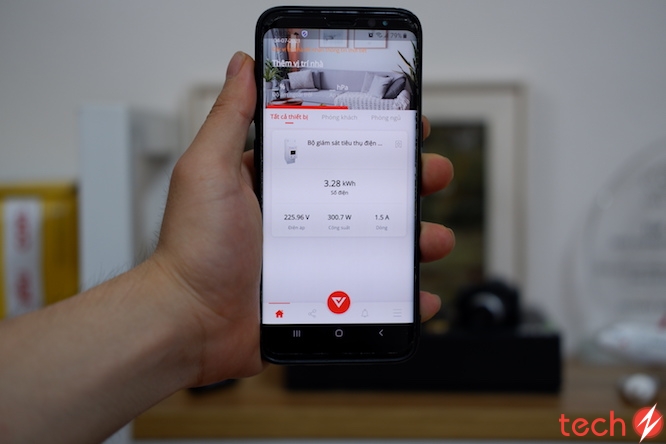 Người dùng có thể theo dõi mức độ sử dụng điện thông qua ứng dụng Vhomenex trên smartphone.