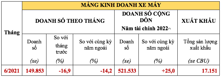 Ở mảng xe máy, Honda bán được 149.853 chiếc xe máy, giảm 16,9% so với tháng trước và giảm 14,2% so với cùng kỳ năm ngoái. Cụ thể:
