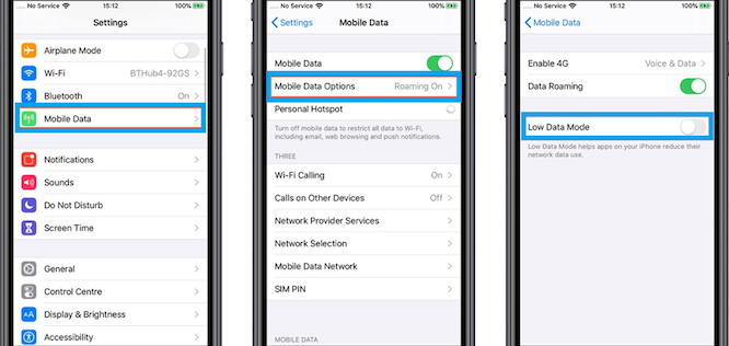 Nếu bạn muốn tiết kiệm dung lượng mạng thì có thể bật Chế độ dữ liệu thấp trong mục Cài đặt -> Di động -> Tuỳ chọn dữ liệu di động. Khi đó, các ứng dụng tự động kết nối và làm mới dữ liệu khi chạy nền sẽ tạm ngưng, những dịch vụ sao lưu cũng sẽ dừng. Ảnh: iPhonetricks.