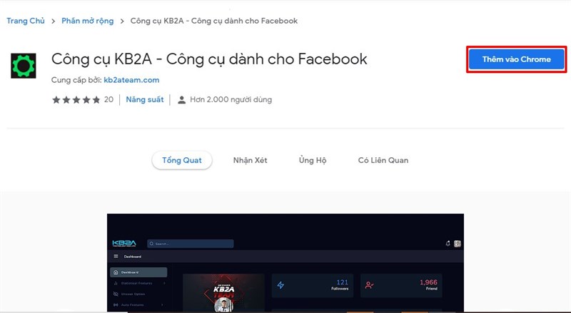 Bước 1: Đầu tiên bạn cần cài đặt tiện ích KB2A Tool vào Chrome.